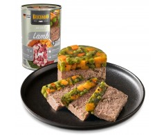 Viande d’agneau, cœur, foie, poumon, panse (53 %) ; bouillon d’agneau (37,4 %) ; patate douce (3 %) ; zooplancton marin (krill)¹ (2,4 %) ; pois (2 %) ; minéraux (1,1 %) ; baies de goji² (0,5 %) ; coquilles d’œufs² (0,4 %) ; algues² (Chlorella vulgaris) (0,2 %)